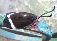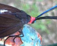 頭部が赤く、翅や体が黒いので、それがホタルガの名前の由来となっているようです。