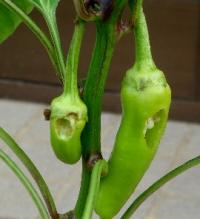 ピーマンの中にオオタバコガがいるときがあります。でも中に糞がないのです・・・