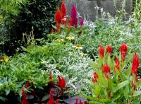 花壇の9月のハーベストムーンです。ケイトウの花が鮮やかでハーベストムーンは目立ちませんね・・・