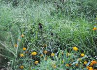 道路に近い草丈の低い草花のまわりだけ刈り取りました。