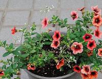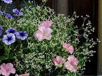 ペチュニアとユーフォルビア・ダイヤモンドフロスト(雪華草)のどちらも日照、気温、用土の乾湿などの条件も合っているように思います。