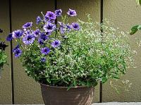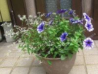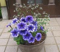 ユーフォルビア・ダイヤモンドフロスト(雪華草)とペチュニア「ブルーアイス」の寄せ植え