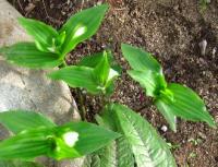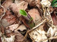 さし芽でも根が出ましたが、枯れ葉の中からも芽がでたトラデスカンチア「コチョウノマイ」。