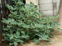こちらのチョウセンアサガオも別の家の塀際にありました。