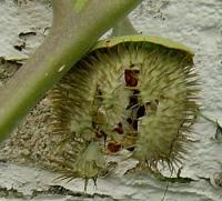 皮が破けるとこげ茶の粒がたくさん顔を出します。