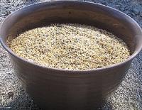 その上に種まき用土を薄く敷いて水をたっぷりかけてやります。