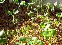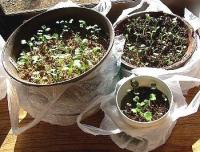 外は雪ですが、室内(廊下)は暖かいので、キク科やアブラナ科のベビーリーフは簡単に育てられます。