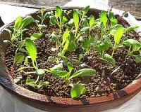 普通は葉が振れあうようになったら間引きをするのですが、この寒いときに芽生えてくれたのだから、込み入ったところはそっと取って別の鉢に植えました。