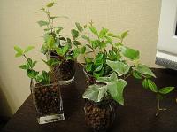 ホームセンターで、ミニミニ観葉植物を買い、ハイドロカルチャー作りに挑戦してみました。