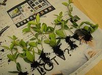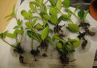 分けたヘデラ(アイビー)の苗は水で土を洗い流すとあっというまにスッキリ。