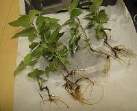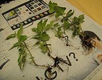 鉢から取り出し、根を傷付けないように気をつけながら土を落としていきます。