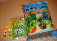 中粒のハイドロボール、ミリオンA、イオン交換樹脂栄養剤を使います。