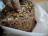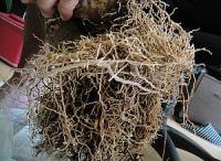 鉢から引っこ抜くと、根がぎゅうぎゅうに詰まっています。これが原因かな?