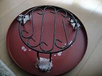 今までの受け皿だとこのスタンドを置けないので、同じく100円ショップにて、和風のお盆を買って受け皿にしてみました。スタンドの脚で傷つけないようにプチプチでくるんでラップしてあります。