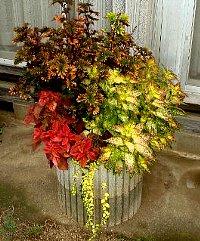 その後、コリウスとの夏から秋にかけての寄せ植えです。