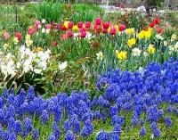 2012-4-22 畑のチューリップ ムスカリやスイセンと