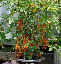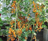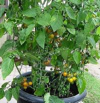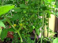 6月下旬の様子です。鈴なりのマイクロトマトの下の段が少し色づき始まりました。