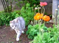 よく似たポピー(ヒナゲシ)は葉のついた茎を伸ばし、枝分かれして花をつけます。