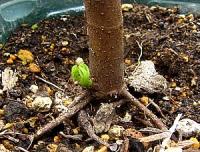 咋年は木が大きくなったと喜んでいたら、根が鉢の底を抜けて地面に入っていました。引っ張ってみてもビクともしません。