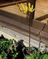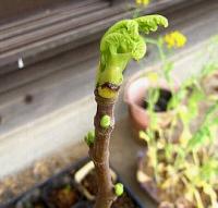 ↓暖かい軒下に置いてあるので、新芽から葉への展開も早いです。