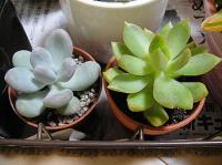 パキフィツム属「星美人」とセダム属「黄麗(おうれい)」。