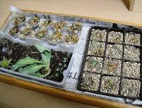 葉挿しは、取れた葉を封筒の中に入れておいて、根が出てから土に寝かせました。
