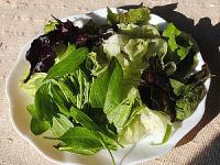 リーフサラダに。レタス、レッドビーと(黒い葉)、チコリのベビーリーフと。