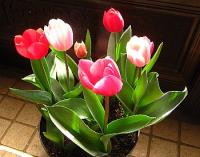 冷蔵庫には入れませんでしたが、プランターで早く咲かせた沢山のチューリップがあります。