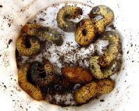 カナブンあるいはドウガネブイブイなどの幼虫でしょうか。薄い黄色の色です。蛹になっているのも混じっています。