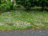 雨の日の初夏、つくば市のレストランに行ったときに見た姫イワダレソウです。