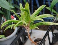百両「上巻鳳凰」は葉色が若草色で、しわくちゃの葉っぱでした。