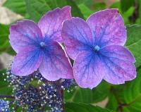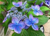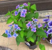 ヤマアジサイ「紫紅梅」の鉢植え。