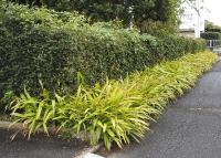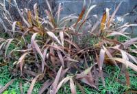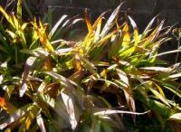 こちらは市内のお宅の生垣のまわりに植えてあった紅葉しつつあるシランです。
