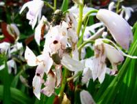 これまで真っ白のシラン(シロバナシラン)と思っていたのですが、画像を見たら花の先端が淡いピンクでした。