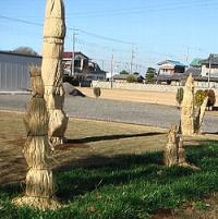 このヤシ風の木は植えつけ直後の冬はこのように防寒していました。