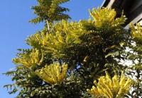 知人の家の正門にあるマホニア・チャリティーですが、立派なシンボルツリーになっています