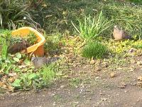 毎年どっさり実がなるハナユズがあり、丸いものは落ちたハナユズの実です。