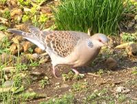 キジバト(ヤマバト)は首のところの白黒のしま模様が特徴。名の由来も模様がキジの雌に似ていることからとか・・・