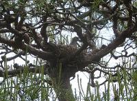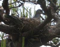 義弟の庭にある松の木の上部に巣を作ったキジバト(ヤマバト)。