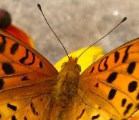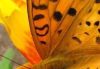 チョウのツマグロヒョウモンの雄の羽根[翅(し)]にもハート模様があります。
