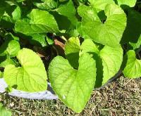 庭に勝手に出ているナガイモの赤ちゃん葉もかわいいハート模様。