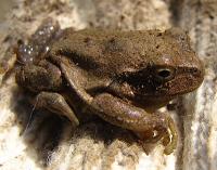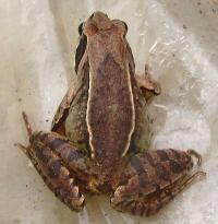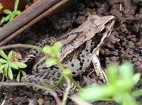 土が付いているので、背中の模様がわかりませんが。大きさからアカガエルと思いました。