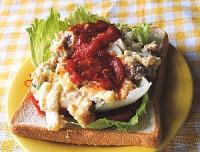 ポテトサラダを盛りつけた上にクッキングトマトソースを載せて出来上がり!