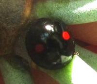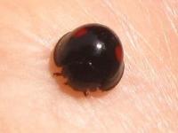ナミテントウより小さくて、黒地に赤の1対の小さな紋があります。.