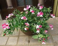 翌年のお正月のプランターの「コンテナスイートピー」の様子です。