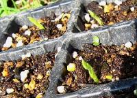 「コンテナスイートピー」は1粒ずつまいて、全部でこれだけの発芽。