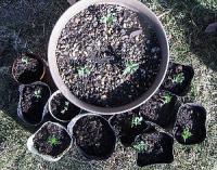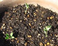 72穴のセルトレイに種をまいたので、苗が小さな内にプランターに植え替えました。