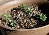 こちらはビニールポットのままで、ちいさなプランターに入れたものです。