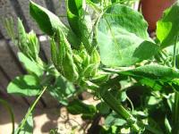 この頃に(本葉5†6節で)摘心すると、分枝が多くなり、こんもりとした草姿になるそうですが、3本植えたのでそのまま摘芯しないで育てました。