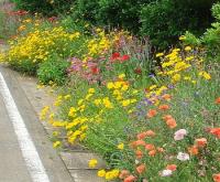 近所の婆ちゃんが手入れをしている畑の道路沿いの花壇です。